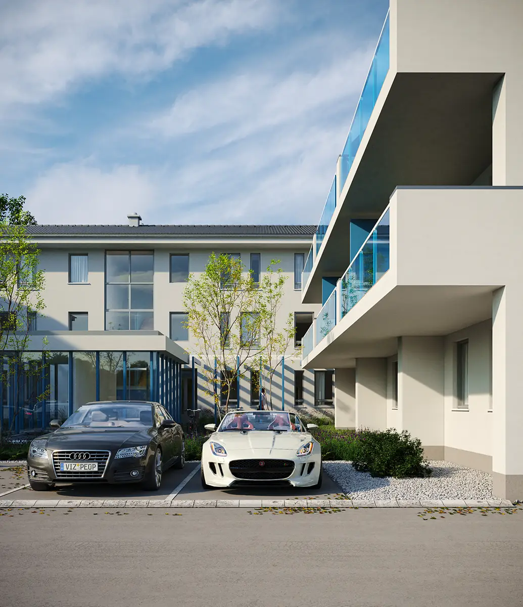 Az ingatlanokhoz igény szerint garázs, mélygarázs, felszíni parkolóhely és külön tároló is elérhető. A tágas, zöld telken kialakított lakóparkot gondozott sövénykerítés öleli körbe, amely garantálja a privát szférát és a nyugalmat. Emellett négy üzlethelyiség is helyet kapott a területen, amelyek a mindennapokat megkönnyítő szolgáltatásokkal bővítik a környék lakóinak kényelmét